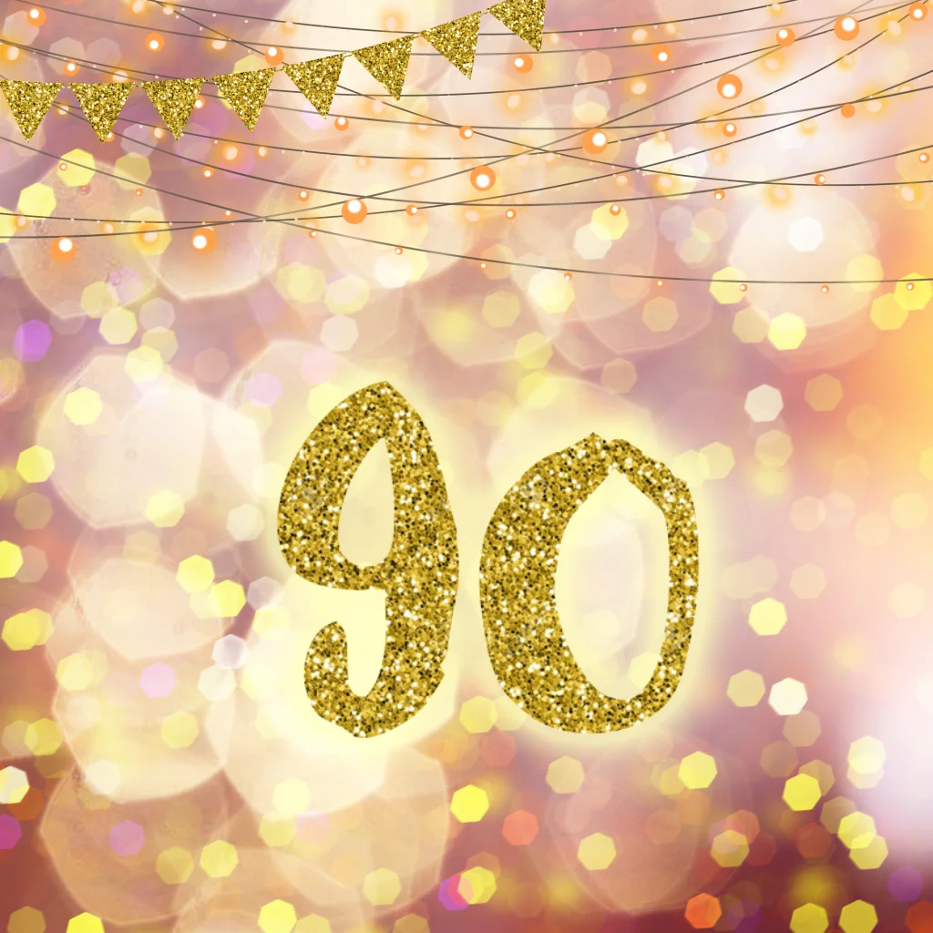 Uitnodiging 90 jaar verjaardag met lampjes en vlaggetjes