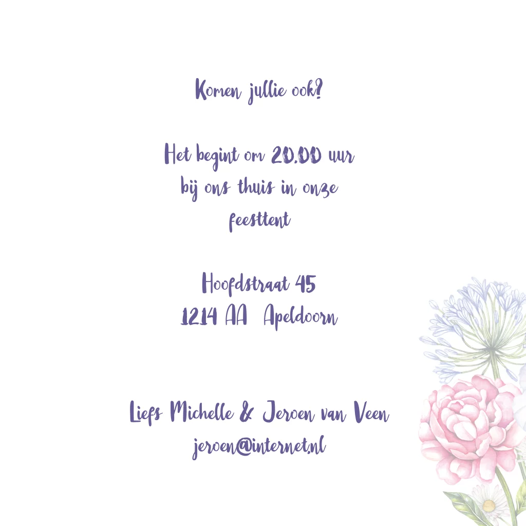 Uitnodiging 85e verjaardag met bloemenboeket