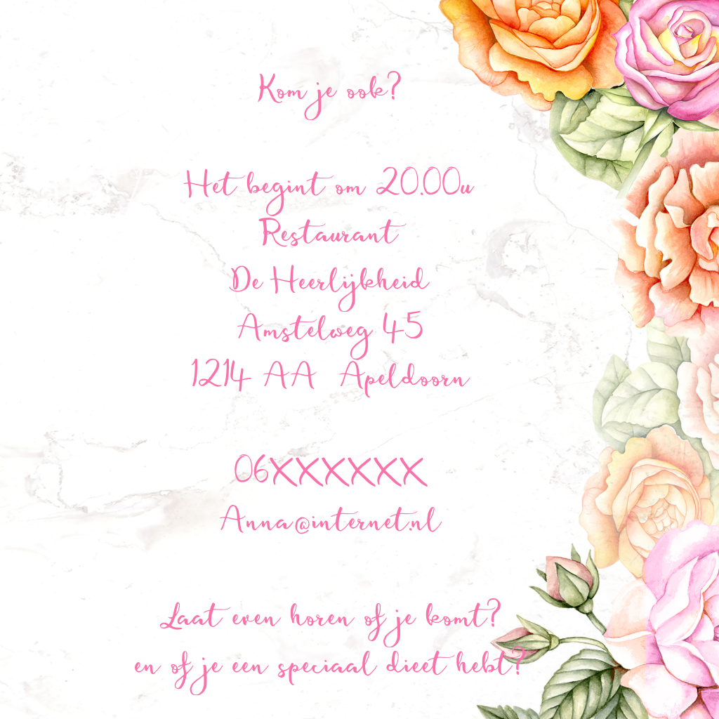 Uitnodiging 85e verjaardag met rozen