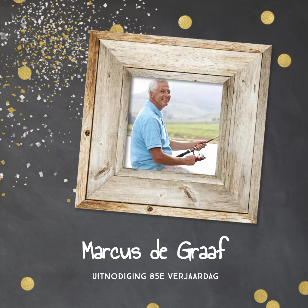 Uitnodiging 85e verjaardag met foto en confetti. (6433)