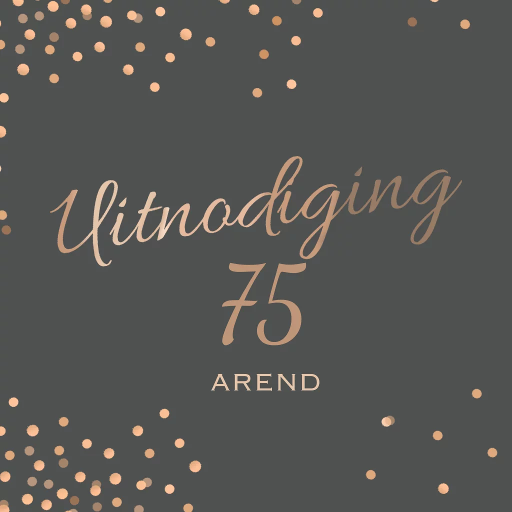Uitnodiging verjaardag 75 jaar koper tinten confetti