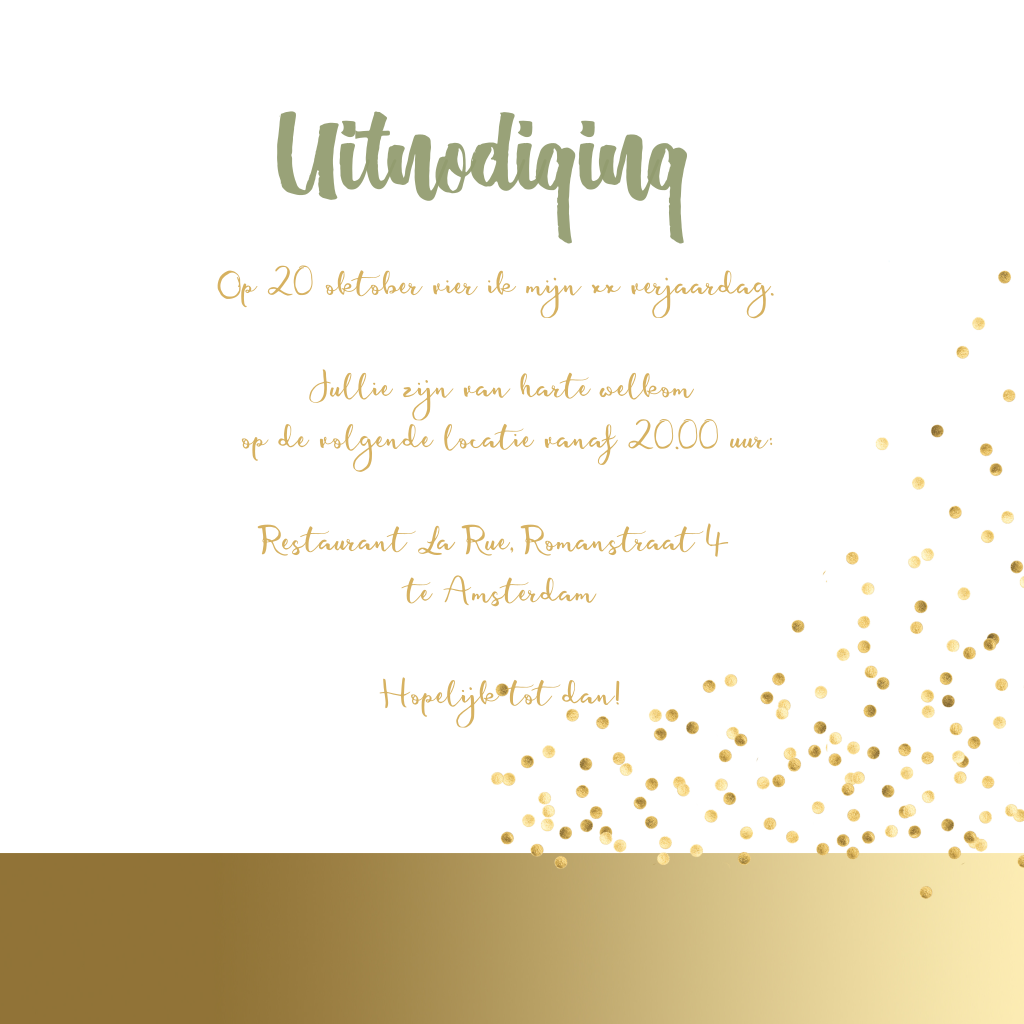 Uitnodiging 75e verjaardag met prachtige bloemen groen en goud