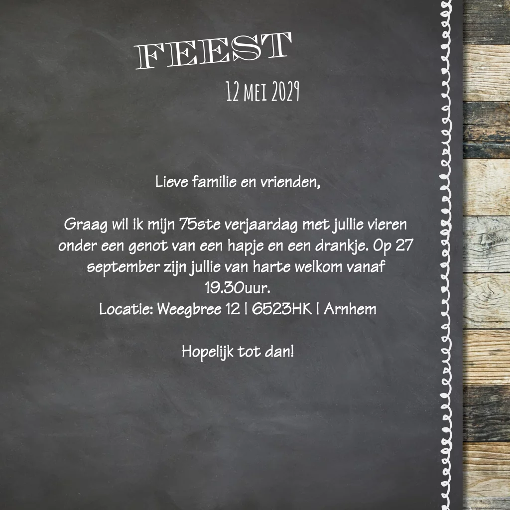 Hippe uitnodiging voor een 75e verjaardag van hout