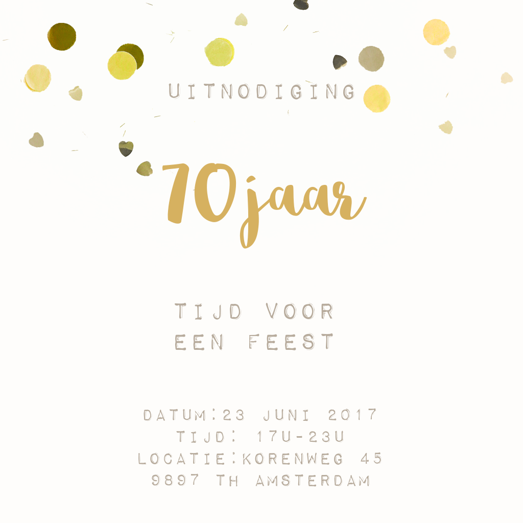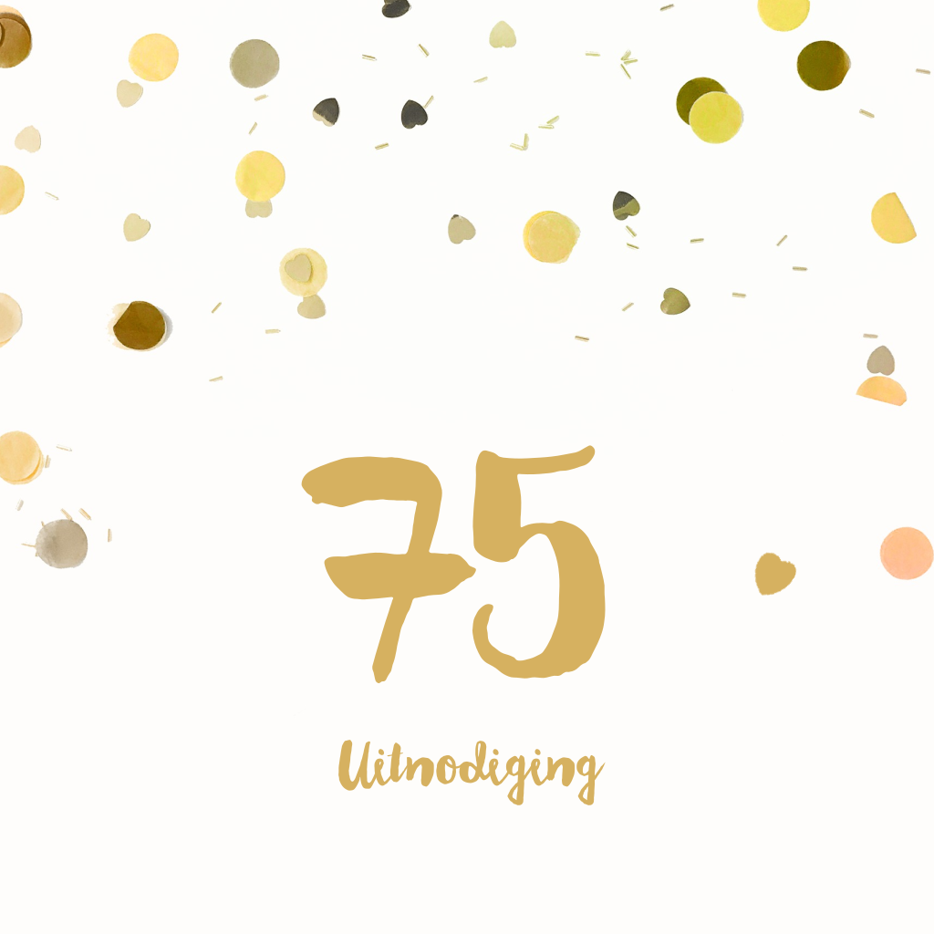 Uitnodiging 75 jaar verjaardag met goudkleurige confetti met de tekst in goudkleur. (5064)
