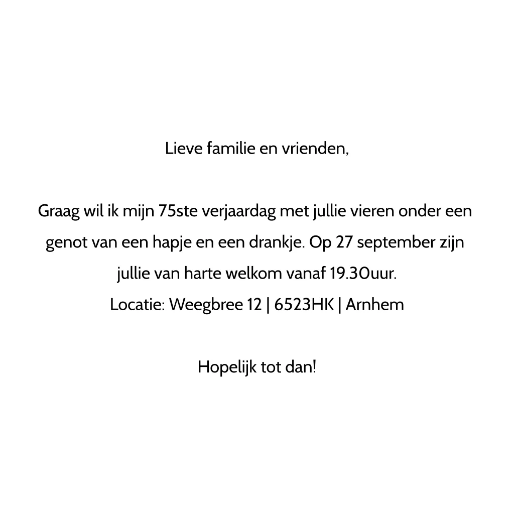 uitnodiging 75 jaar maken - vijfenzeventig jaar