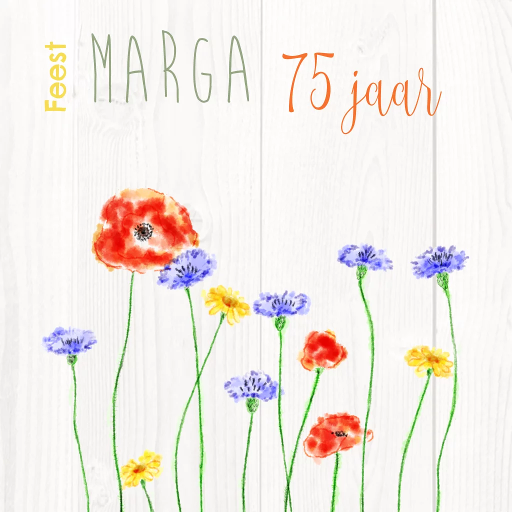 Verjaardagsuitnodiging veldbloemen 75 jaar aquarel