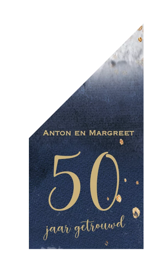 Vlag jubileum feest getrouwd blauw met goud look. Alle teksten zijn naar wens aan te passen. (23191)