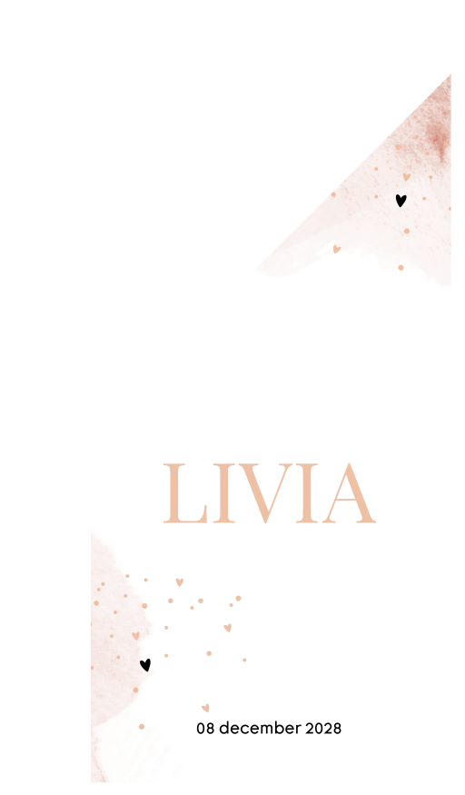 Moderne geboortevlag voor een meisje met naam met oud roze / terra rosa waterverf op de achtergrond. (23537)