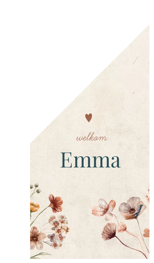 Met deze geboortevlag met mooi geschilderde bloemen in aarde tinten zit je altijd goed. De kleuren en lettertypes kunnen naar wens aangepast worden. (23913)
