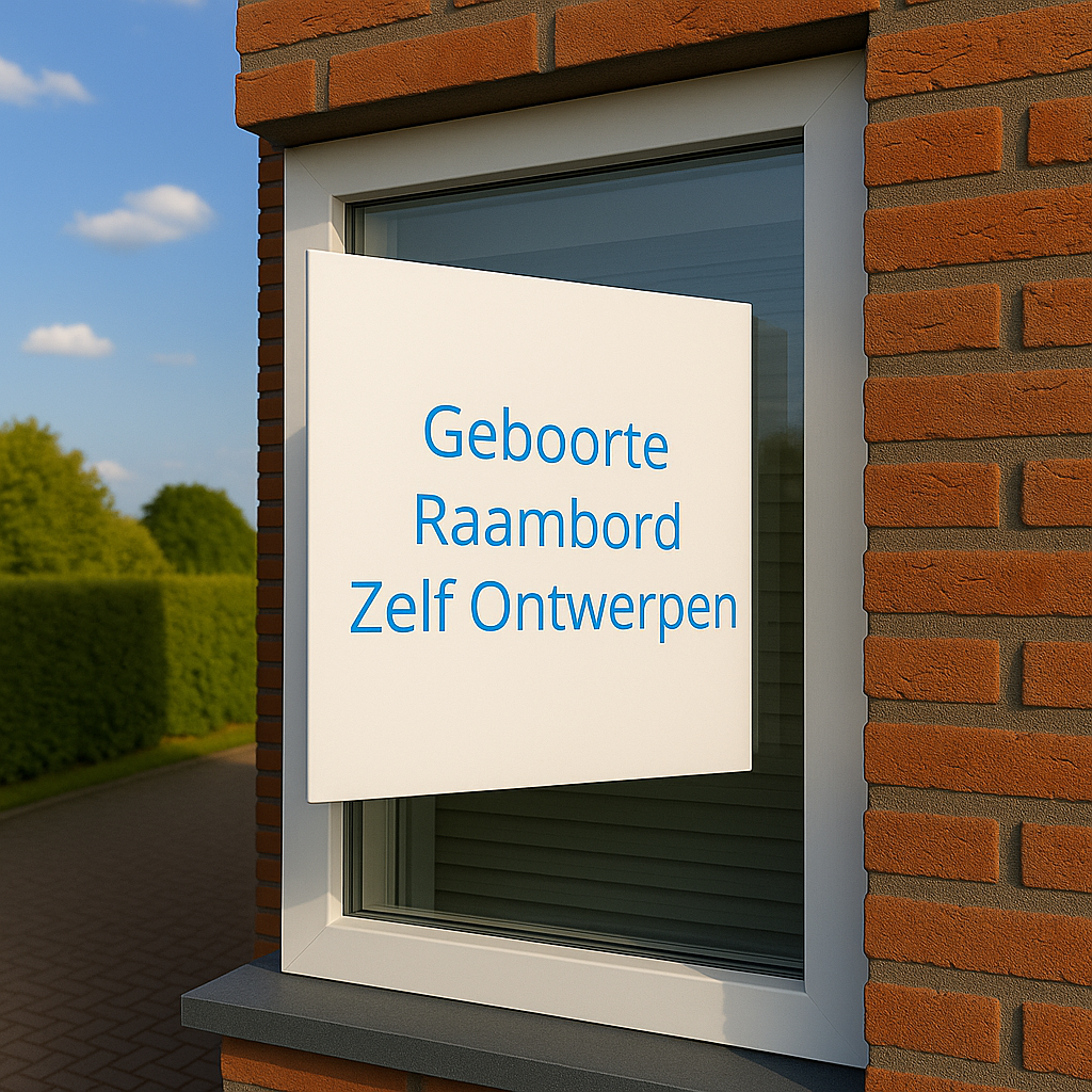 Laat de buurt zien dat je kindje geboren is! Bestel dit hippe raambord in de stijl van het geboortekaartje. Het geboortebord, dat je misschien wel kent als 'makelaarsbord', is gemaakt van stevig en weerbestendig materiaal. Het ontwerp, dat je eventueel zelf nog kunt bewerken, wordt op beide zijden aangebracht. Hierdoor is het bord van alle kanten goed zichtbaar.