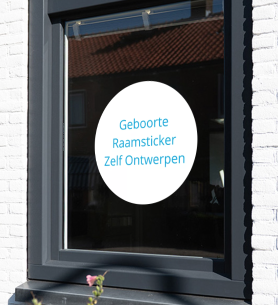 Kindje geboren raamsticker zelf ontwerpen 60 centimeter rond formaat.