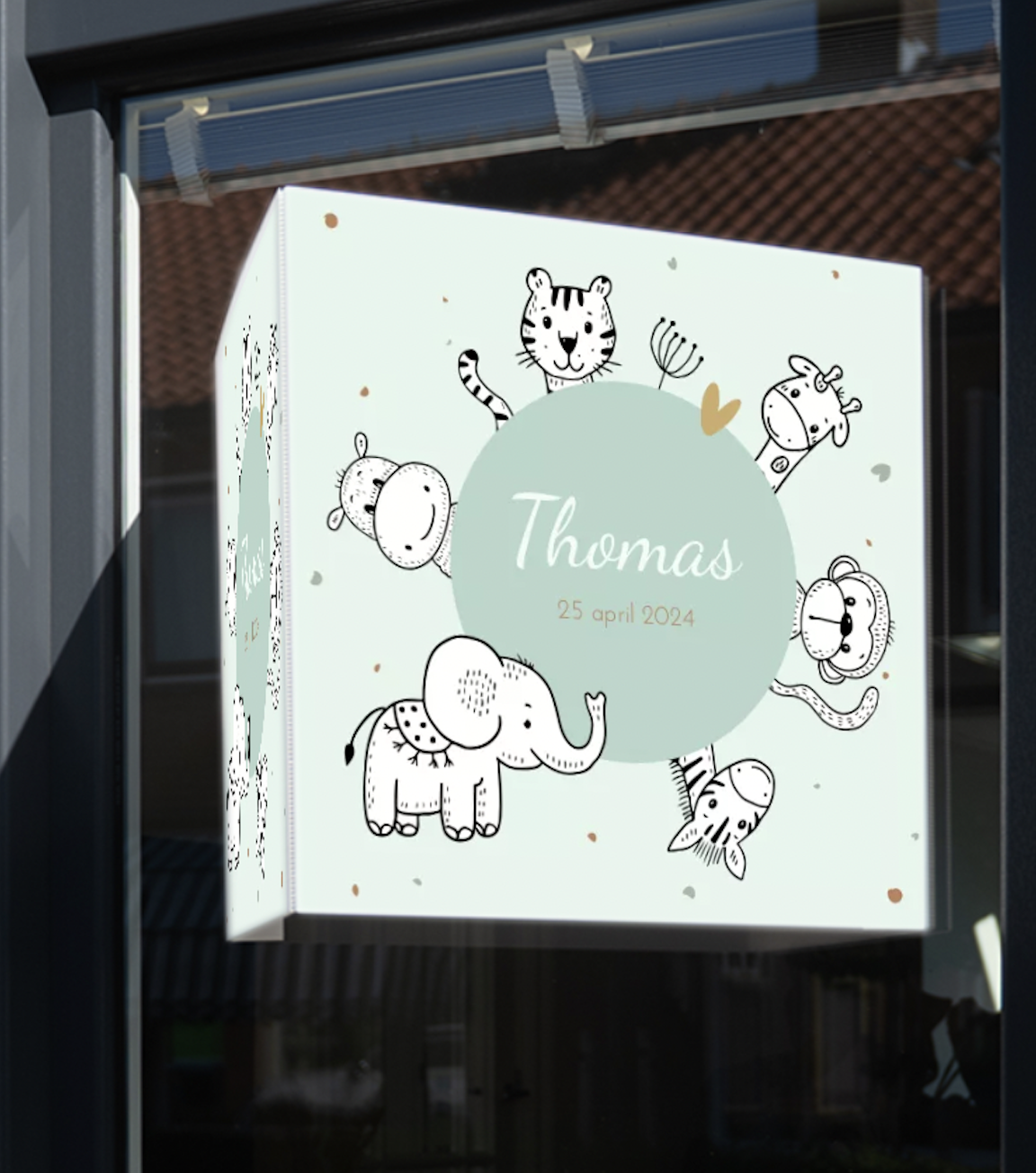 Raambord Dubbel Geboorte Baby Diertjes Groen