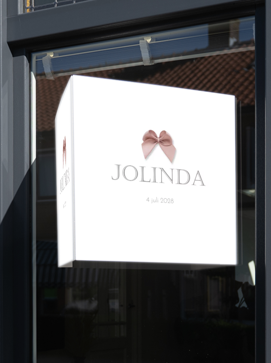 Raambord geboorte met geprint oud roze strikje voor een meisje. (7910)