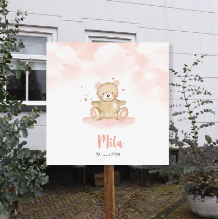 Tuinbord met lief getekend beertje en hartjes. (23609)