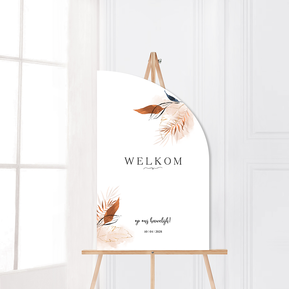 Halve boog welkomstbord met exotische blad