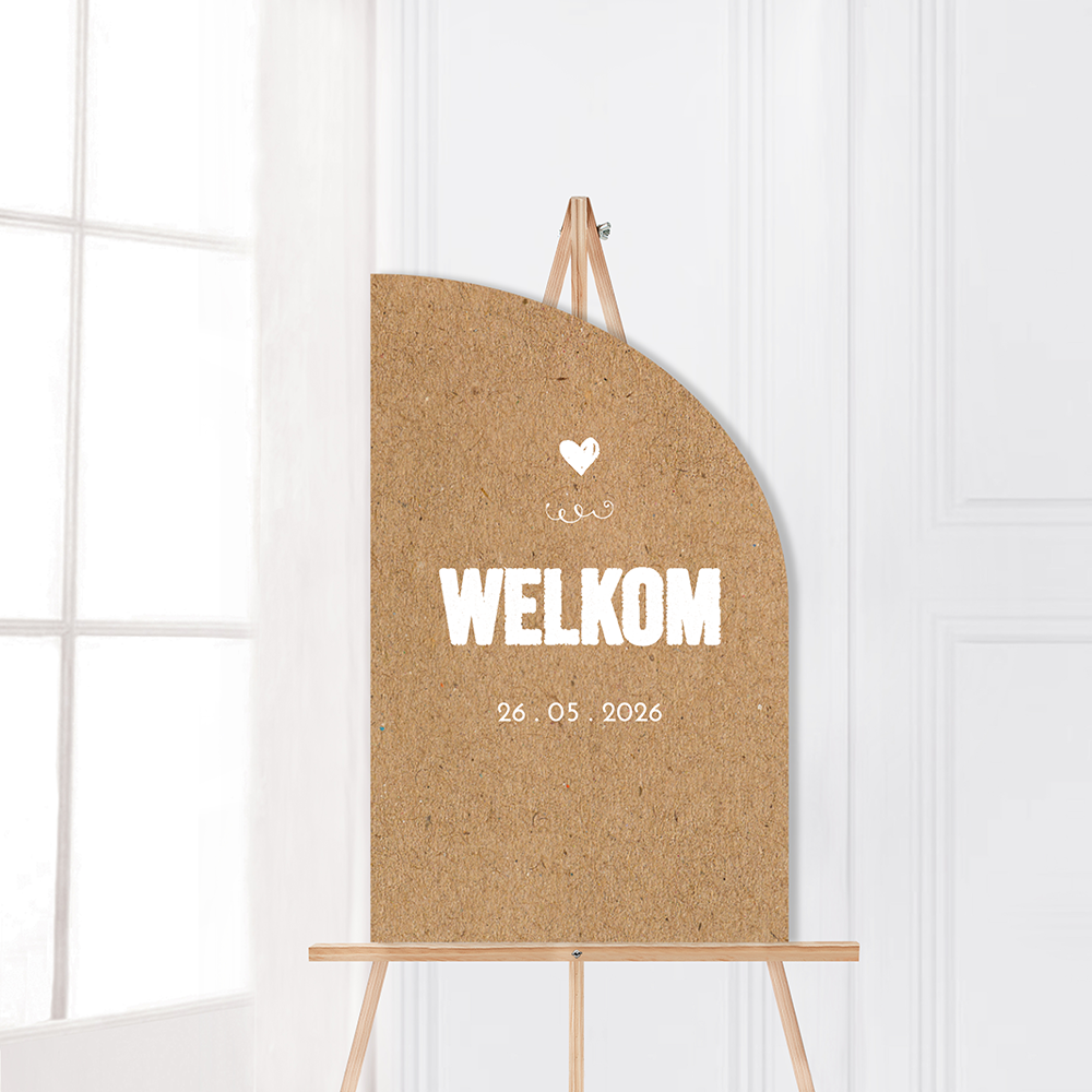 Welkomstbord boogvorm kraft-look achtergrond met witte tekst