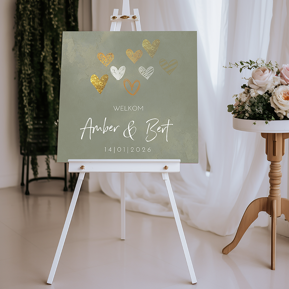 Welkomstbord groen met hartjes