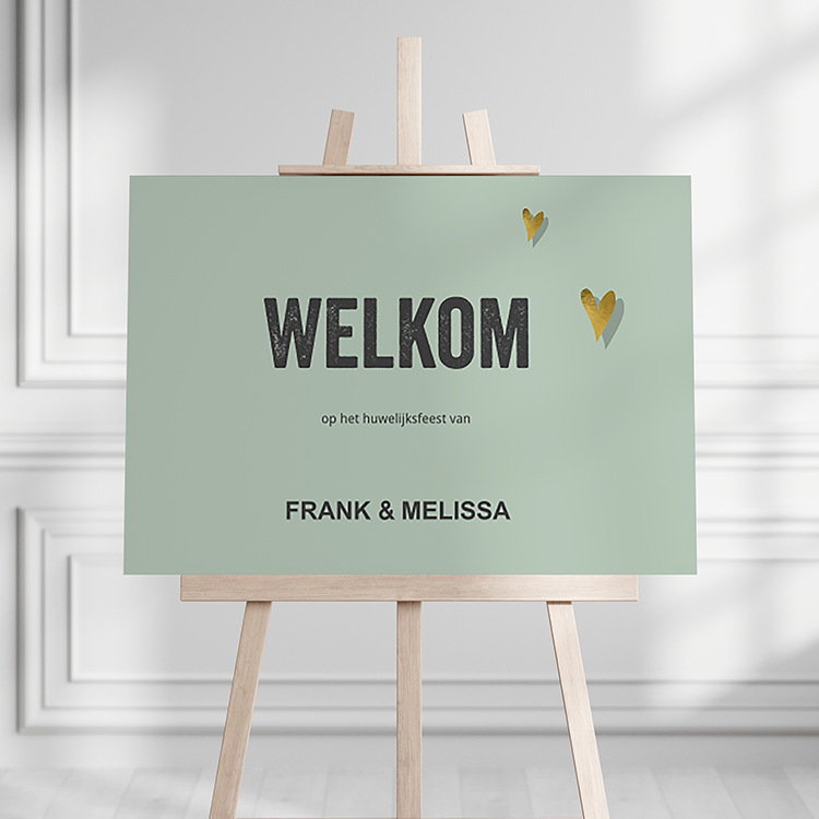 Welkomstbord met een groene achtergrondkleur