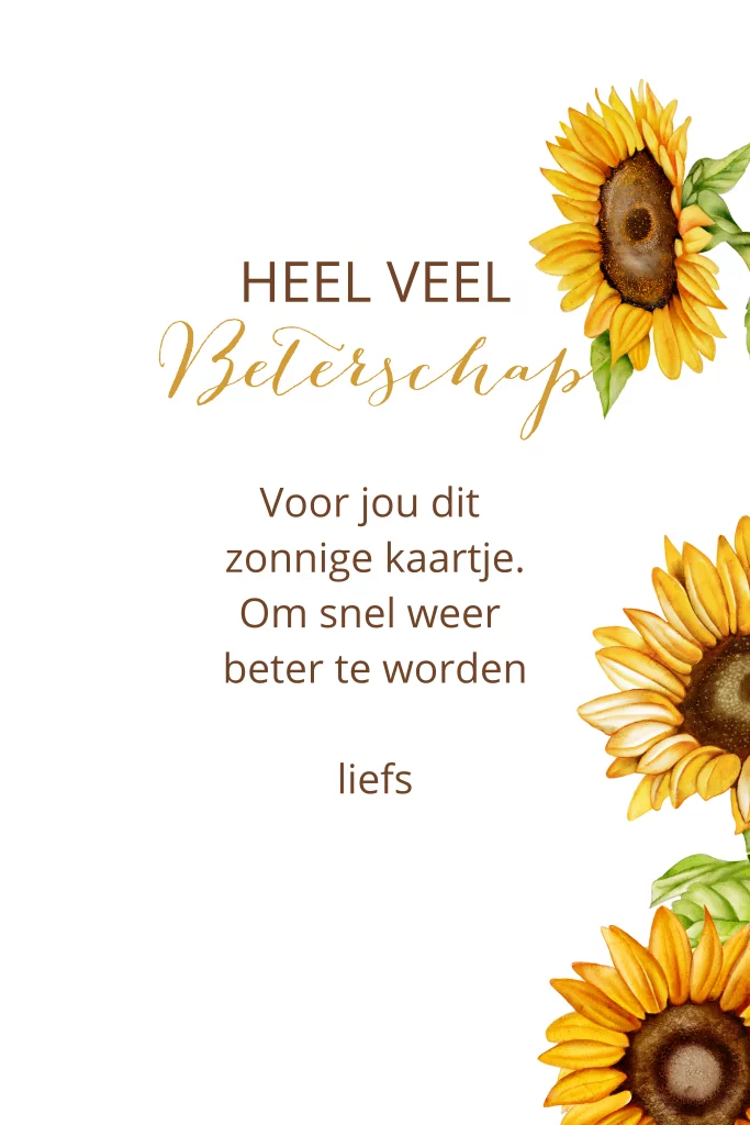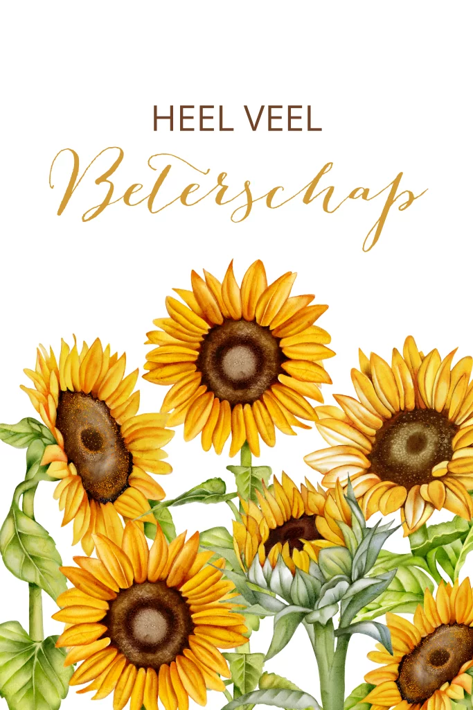 Wenskaart om iemand beterschap te wensen met veel mooie zonnebloemen. (24035)