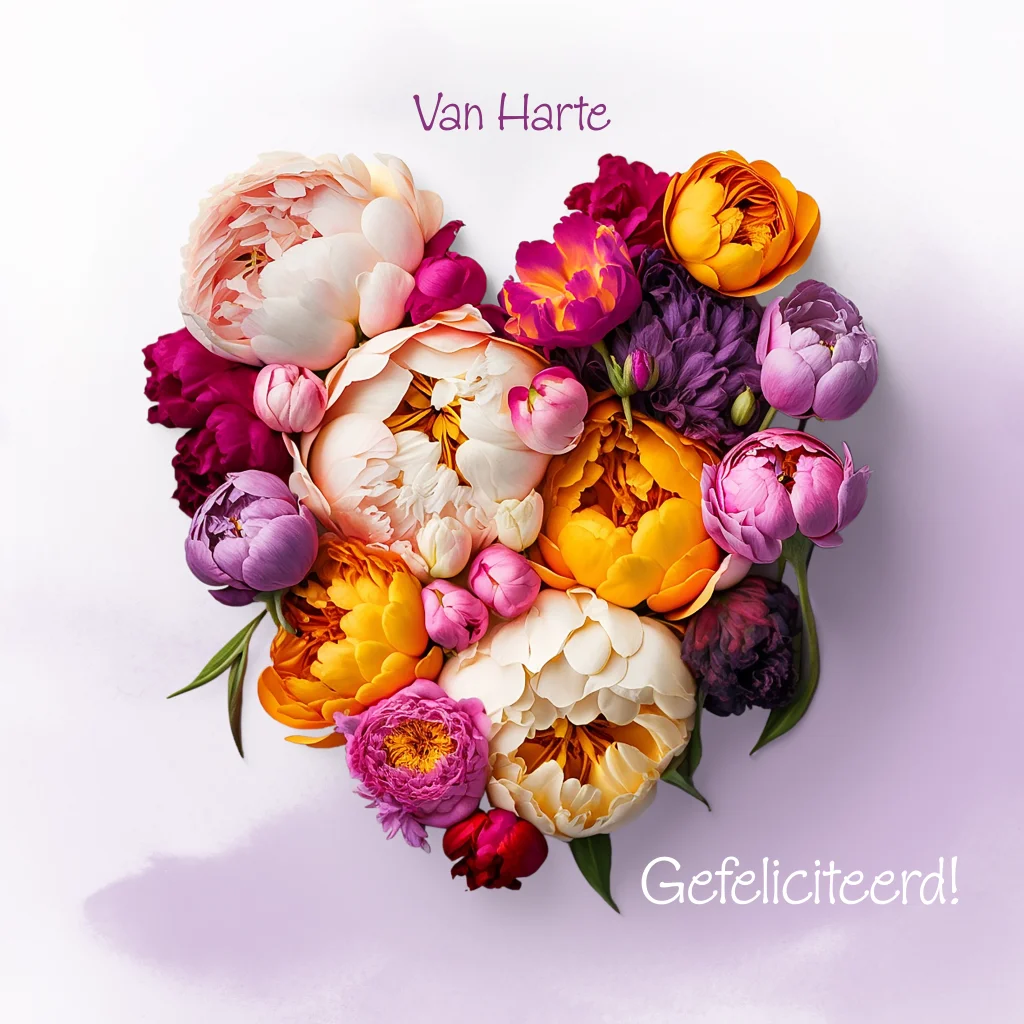 Prachtige kaart met een bloemenhart. Voor felicitatie van bv jubileum. Maar kan ook voor andere feestelijke gelegenheden zoals verjaardagen als je de tekst aanpast. (24064)