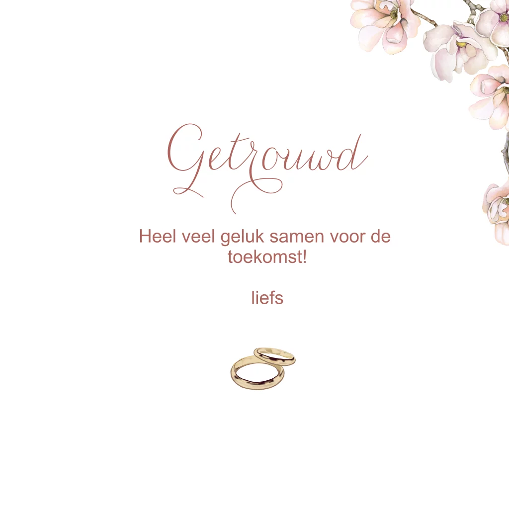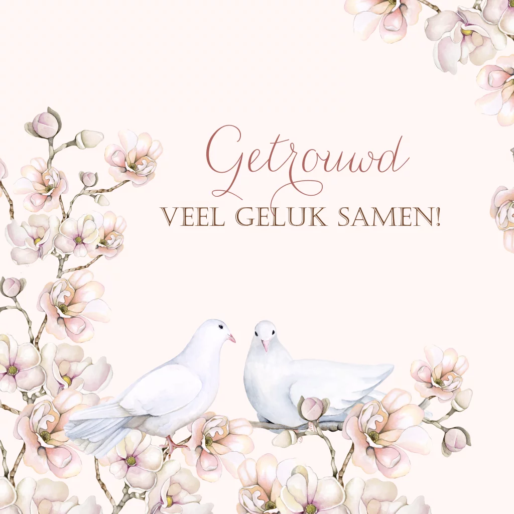 Wenskaart felicitatie trouwen huwelijk met duiven bloesem