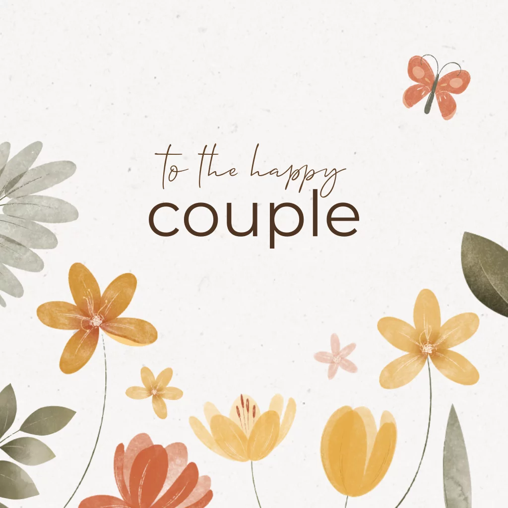Felicitatie wenskaart voor een huwelijk met in aquarel getekende bloemen in aarde en pastel tinten. (23874)