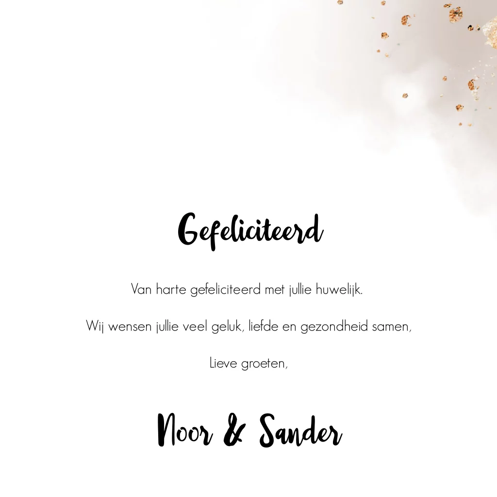 Wenskaart felicitatiekaart huwelijk bruiloft met bruin tinten aquarel en goud glitter look. (23705)
