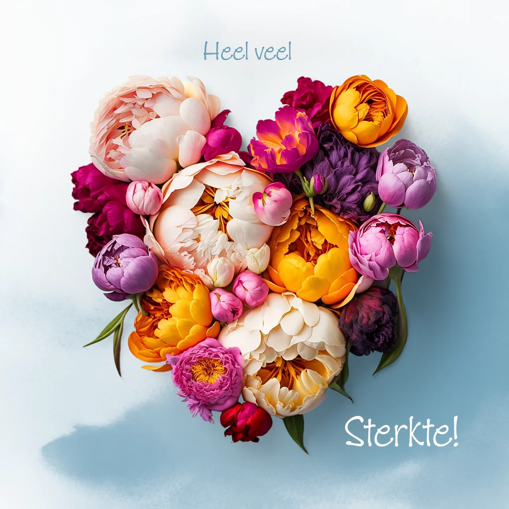Wenskaart bloemenhart sterkte