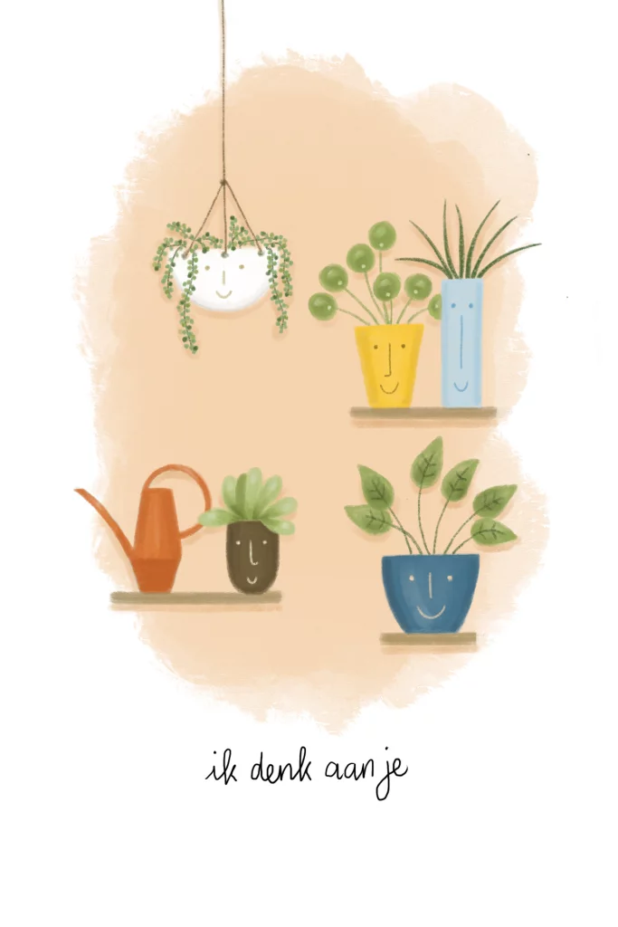 Een lieve wenskaart met plantjes om te laten weten dat je aan iemand denkt. (24087)