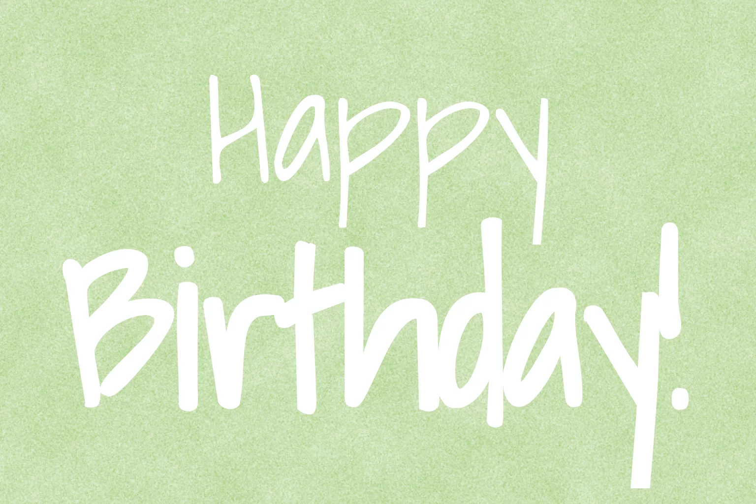 Vrolijke wenskaart verjaardag met een groene glitter look. Binnenkant versiert met proostende wijnglazen.