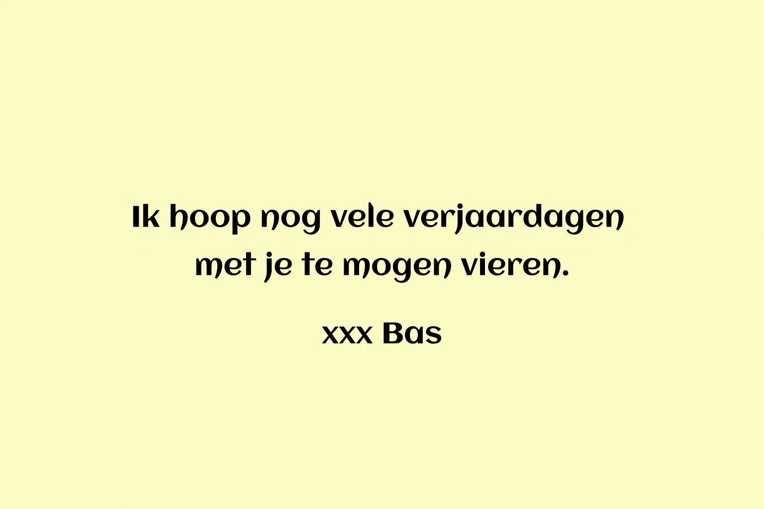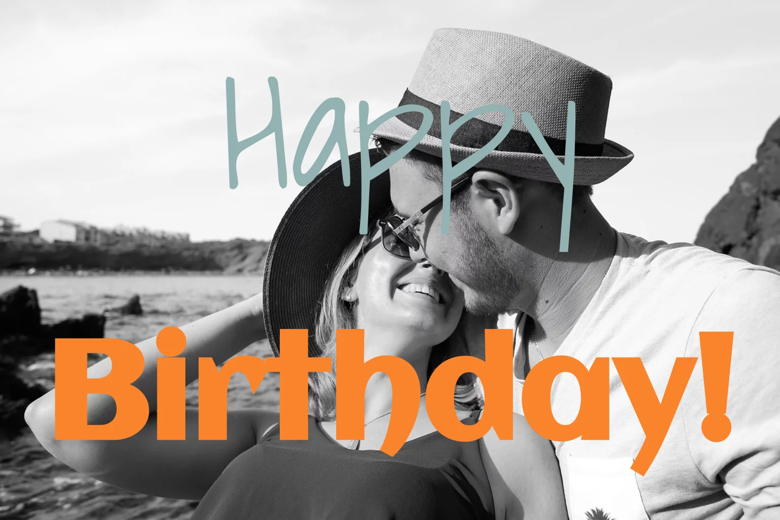 felicitatiekaart Verjaardag met foto met tekts Happy Birthday. De teksten en kleuren kunnen naar wens aangepast worden.