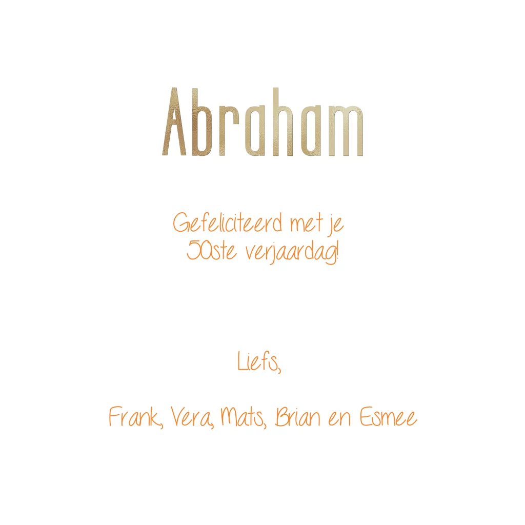 Felicitatie kaart verjaardag. Oranje met goud look tekst. Teksten zijn naar wens aan te passen en/of te verwijderen. (44444)