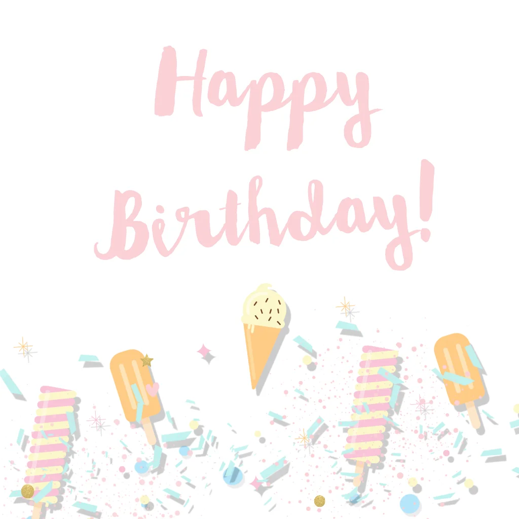 Vrolijke felicitatiekaart om iemand te feliciteren met een verjaardag. Deze kaart is in een zomers thema met ijsjes en confetti