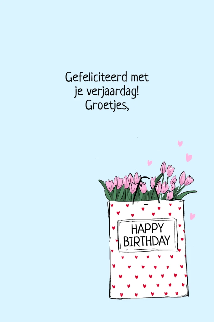 Verjaardagskaart vrouw tas hartjes