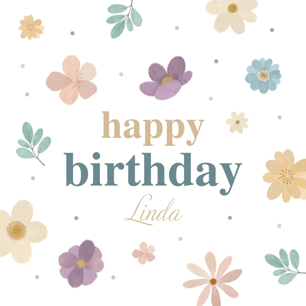 Moderne kaart met kleurrijk bloemenpatroon en stippen. (24339) Gefeliciteerd verjaardag vrouw bloemen kaart