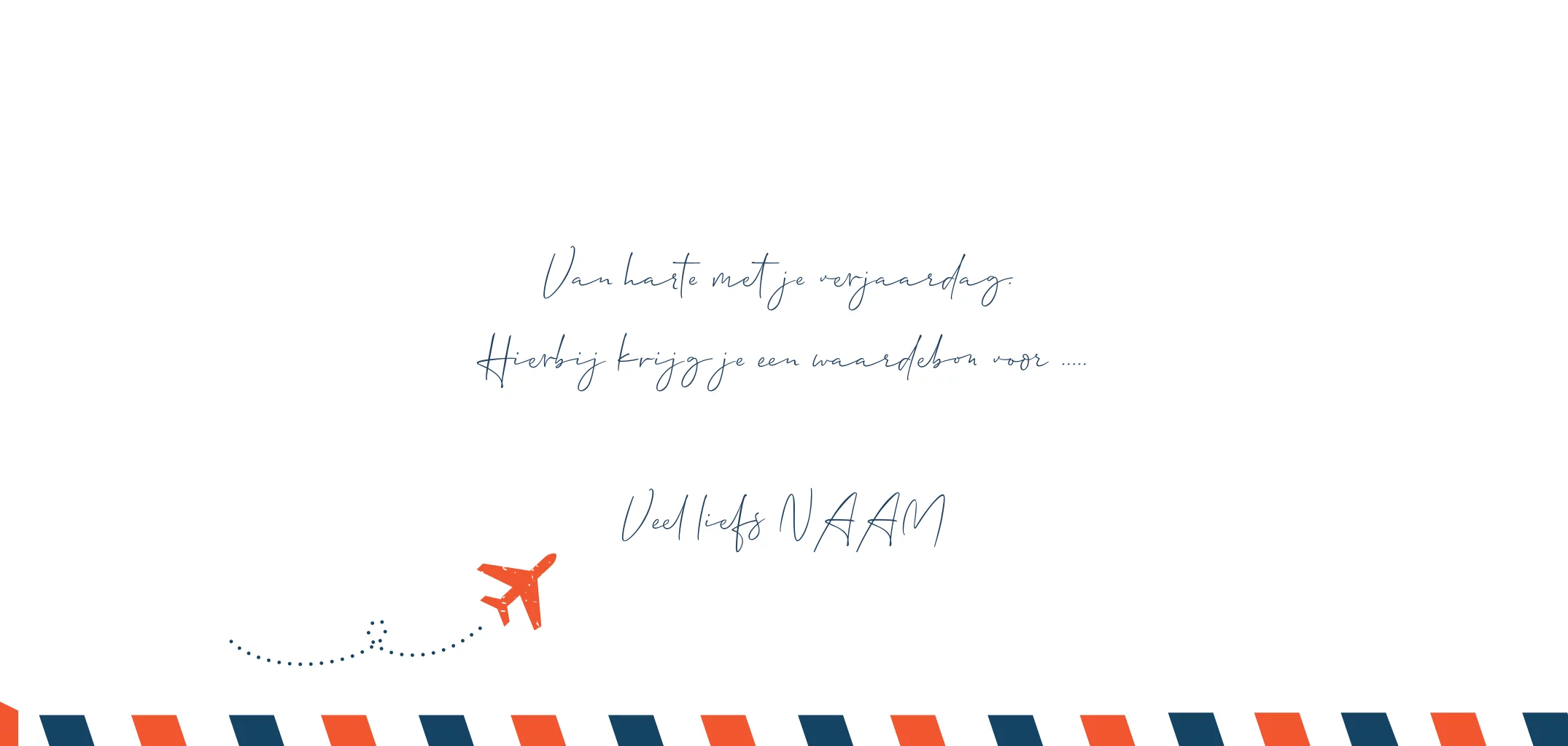 Waardebon Weekendje Weg in ticket air post stijl met wit blauw en oranje met vrolijke kleuren (23554)