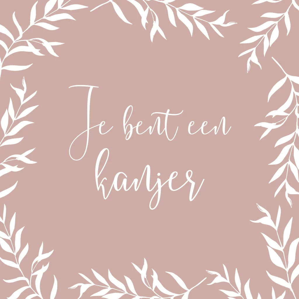 Hip dubbele wenskaart met de tekst 'je bent een kanjer'. In oud roze kleur met speels geplaatste takjes in het wit. (44444)