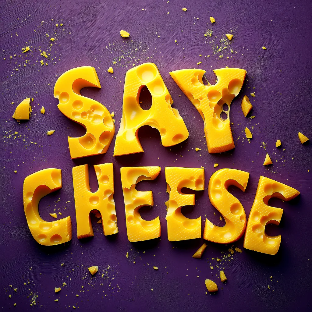 Wenskaart met Say Cheese in Kaas letters