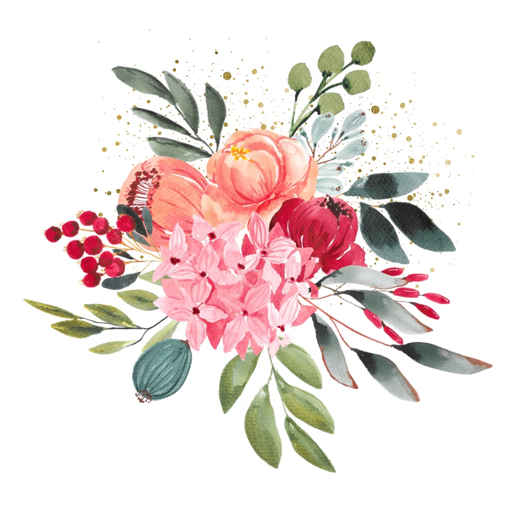 Wenskaart met geschilderde bloemen. Voor een verjaardag, huwelijk en jubileum. (44444)