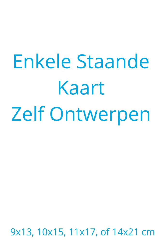 Zelf je staande enkele kaarten ontwerpen. Start met dit lege ontwerp in onze tool of upload hier je eigen ontwerp. 9x13, 10x15, 11x17, of 14x21 cm