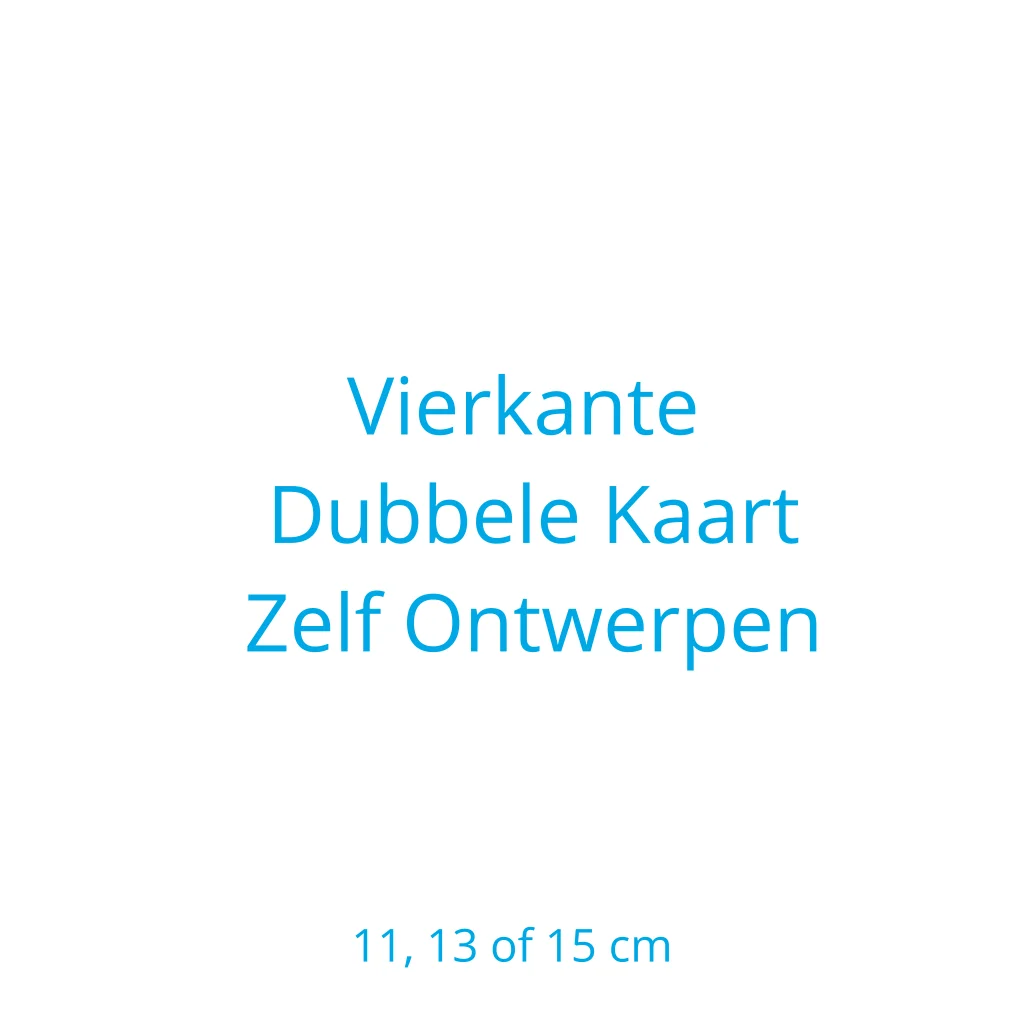 Zelf je vierkante kaart ontwerpen? Start met dit lege ontwerp in onze tool of upload hier je eigen ontwerp. Je kunt de kaart bestellen in 9 papiersoorten en 3 formaten: 11, 13 en 15 cm.